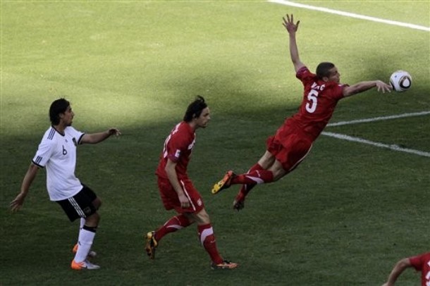 ドイツはクローゼが退場。セルビアも誰か退場するんじゃ?ヴィディッチとか?なんてのんきに考えてたら、そのヴィディッチがエリア内でバレーボールww セルビアのDF名物!